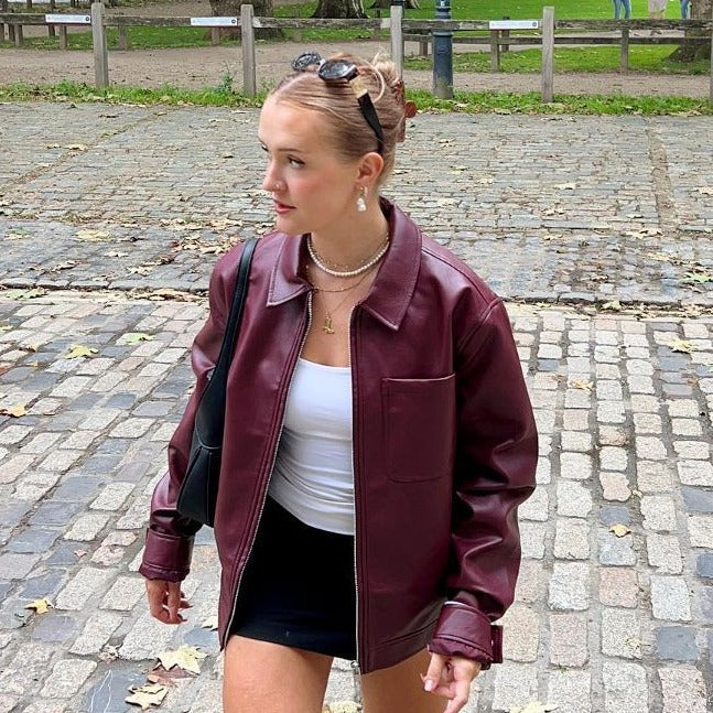 Women’s Retro PU Leather Jacket for Autumn Winter